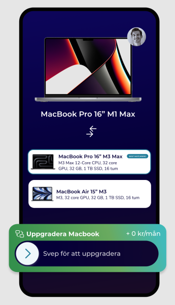 Uppgradera din Macbook varje år* så förlänger vi livslängden och fixar en ny klimatsmart användare. Din gamla dator raderas säkert och får nytt liv, eller återvinns miljövänligt. Slipp krångel med att sälja datorn begagnat när ni byter till nästa generation.